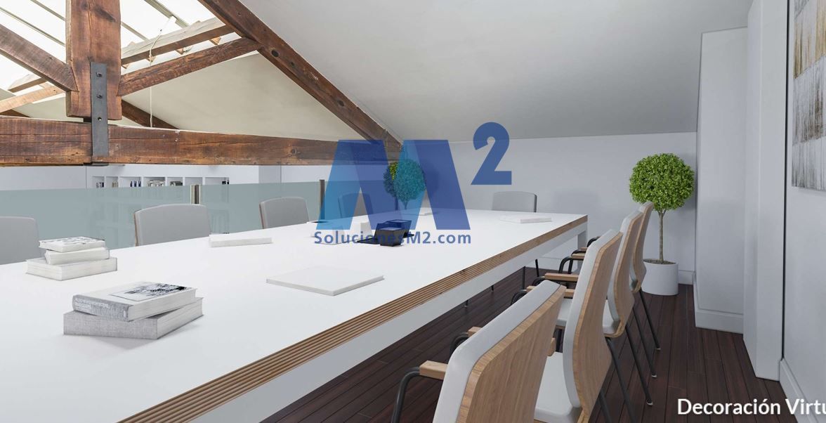 En planta alta altillo, tenemos una sala de reuniones abierta, con capacidad para seis puestos de trabajo.