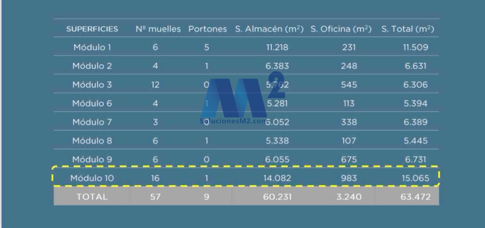 Modulo 10 de 15.065 m2 construidos, almacén de 14.082 m2, oficina de 983 m2, 16 muelles y 1 paso de carruajes