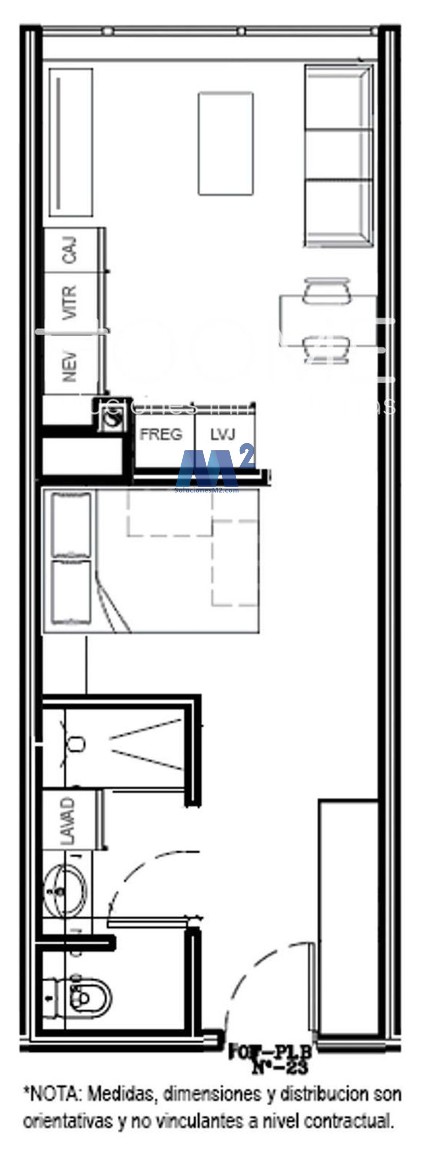 Las infografías y los planos son meramente orientativos, reservándose la Promotora la facultad de introducir aquellas modificaciones que, por razones técnicas o jurídicas, sean necesarias o convenientes para la correcta finalización de la reforma o que sean ordenadas por los organismos competentes.